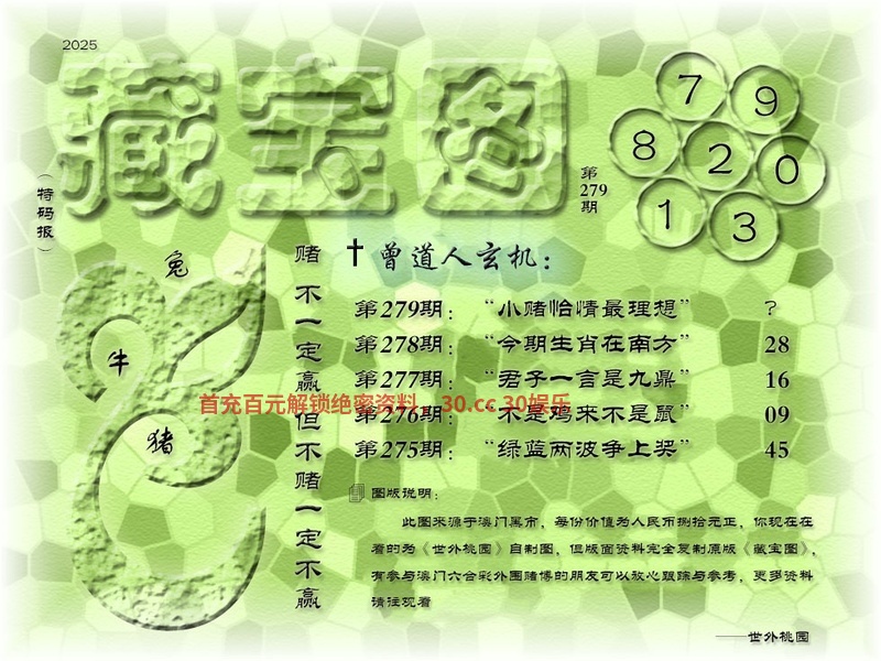 279期:小赌恰情最理想 解释:小赌恰情最理想,小赌,解小肖蛇猴龙鸡鼠兔 藏宝九肖:蛇猴龙鸡鼠兔羊马牛 |
